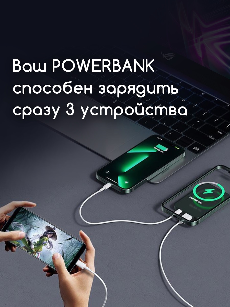 ВАЖНО! Для включения PowerBank и начала зарядки смартфона необходимо нажать кнопку питания, которая расположена на нижней грани устройства